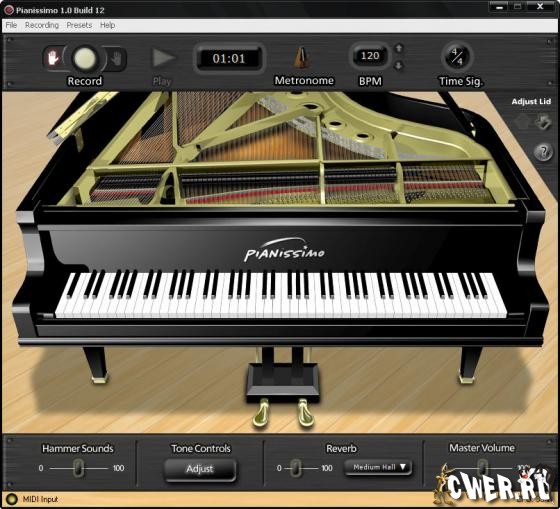 • широкие настройки тона, резонанса, реверберации и других эффектов рояля;