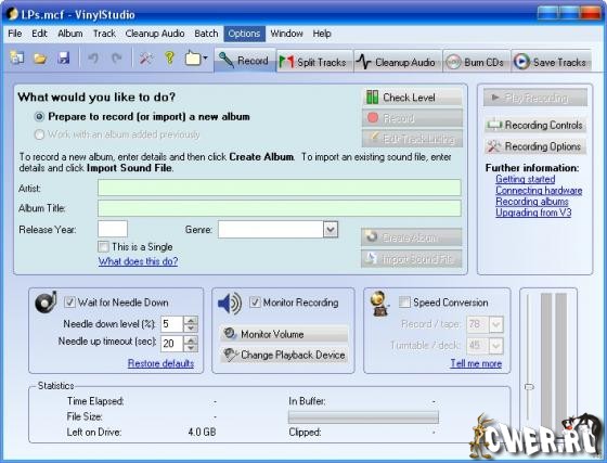 Программа самостоятельно разобьет содержимое диска на отдельные треки и удалит все посторонние шумы. Кроме того, новая версия VinylStudio 5 автоматически загрузит из Интернета названия музыкальных композиций, представленных на конвертируемом альбоме, и экспортирует список в выбранный пользователем редактор CD-обложек (например, в программу Nero Cover Designer). Для работы с программой необходим персональный компьютер, оснащенный звуковой картой, и проигрыватель грампластинок (поддерживаются современные модели проигрывателей с интерфейсом USB ) или портативный кассетный магнитофон. Начинающие пользователи по достоинству оценят наличие подробных пошаговых инструкций по подключению проигрывателя к ПК.