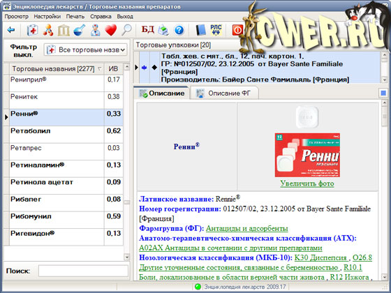 Информация данной программы соответствует «Энциклопедии лекарств» 17 выпуск, 2009 г.