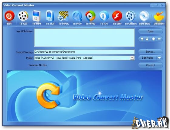 Video Convert Master - универсальный конвертор видеофайлов. Прост в работе - при этом сочетает в себе быстроту и качество обработки. Конвертирует AVI, DVD, VCD, SVCD, MPEG, MPEG 1, MPEG 2, MPEG 4, RM, RMVB, WMV и др. форматы. Записывает видео в DVD/VCD/SVCD. Записывает изображение с DV, WEB Camera, VCR, TV Tuner, и Analog Camera.