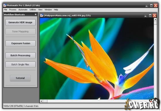 - Поддержка JPEG, TIFF, Radiance RGBE, OpenEXR, PNG, PSD и RAW файлов с различных фотокамер