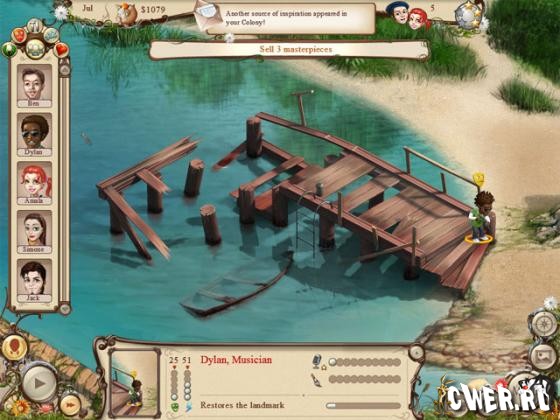 Вас ждёт невиданное приключение в мире творчества и воображения, перед вами новая паззловая стратегия, симулятор племени. Приключение начинается с находки заброшенной основы, утопической творческой колонии, созданной наиболее смелыми и способными к новому творцами своего времени. Вам предстоит выполнять задания и вдохновлять художников, чтобы они вернулись в это святилище творчества. К вам обратятся скульпторы, танцоры, музыканты и многие другие, придётся взять на себя ответственность за их творческое развитие, практиковаться, созидать и творить шедевры! Поддерживайте атмосферу вдохновения и они сотворят для вас чудо. Устраивайте их личные взаимоотношения, развивайте колонию и раскройте тайну исчезновения основателей поселения!