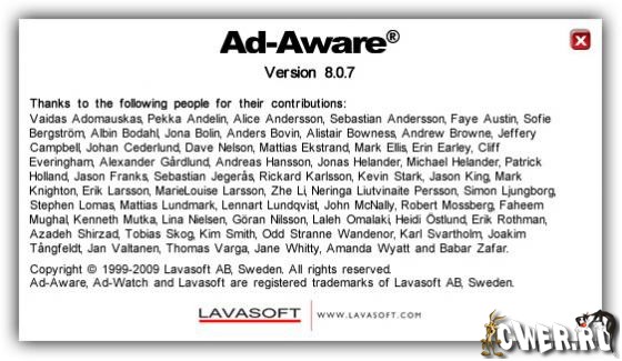 Lavasoft Ad-Aware Anniversary 2009 Professional - предназначена для поиска и устранения шпионских модулей. При своей работе Ad-Aware сканирует оперативную память, файлы на жёстком диске и определяет в них программы-шпионы и запущенные вредоносные процессы.