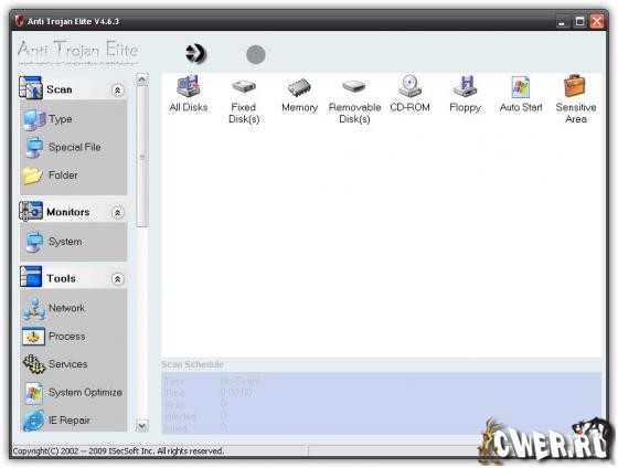 Anti-Trojan Elite - программа для очистки компьютера от таких вредоносных файлов, как трояны, кейлогеры и прочее. Сканирует не только жесткий диск (включая архивы ZIP CAB), но и смотрит на то, какие процессы запущены. Также располагает менеджером сетевых процессов, при помощи которого можно определить, где запущен нежелательный процесс. Кроме этого, вы можете просмотреть ключи и значения реестра и удалить подозрительные, починить Internet Explorer, оптимизировать работу Windows и многое другое. Помимо этого, в состав программы входят утилиты для блокирования подозрительных TCP-соединений и процессов, а также для исправлений ошибок в реестре, вызванных деятельностью вредоносных программ.