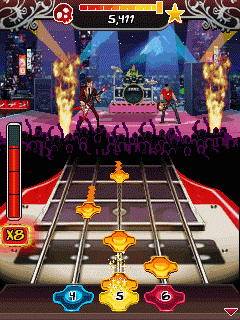 Играй на мобильном телефоне всемирно известных рок-хитов без каких-либо музыкальных знаний! Просто нажимай клавиши мобильного телефона в ритме, соответствующем цветным точкам на экране. Улови ритм, и ты услышишь гитару вместе с другими инструментами, дарующую тебе невероятное чувство настоящей игры. Стань настоящим рок-гуру! Начинай международную карьеру рок-звезды, играя перед возбуждённой аудиторией самых престижных концертных залов... но не забывай следить за нотами! Размеры экранов: 128x160, 176x208, 176x220, 208x208, 240x320, 320x240, 352x416, 360x640, 480x800.