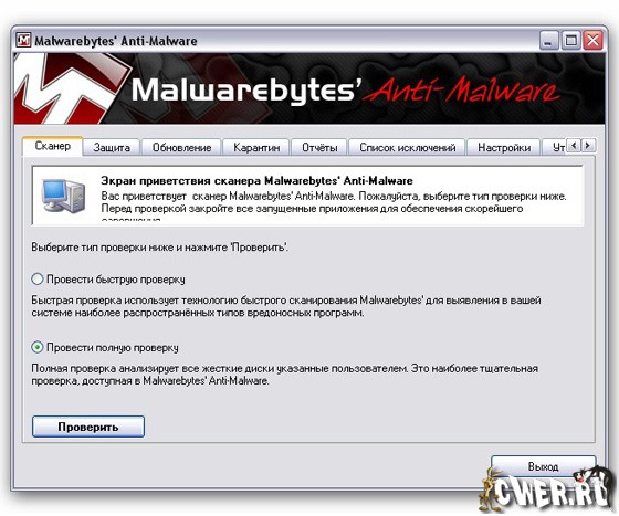 Malwarebytes Anti-Malware - новая версия программы от создателей RogueRemover Pro, AboutBuster и других популярных утилит, способная находить и удалять разнообразные вредоносные программы. Программой используется эвристический метод сканирования, позволяющий в реальном времени контролировать безопасность всей системы. Также имеется возможность полного сканирования всех дисков. Помимо этого, в состав данной программы входят дополнительные утилиты, предназначенные для удаления вредоносных программ вручную. Обладает понятным пользовательским интерфейсом с многоязычной поддержкой, включая поддержку русского языка.