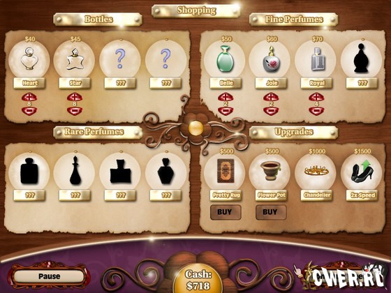 Эта игра отправит вас в кругосветное путешествие вместе с Софией, юной искательнице приключений, парфюмером и владелицей парфюмерной лавки в 1940х годах. Вы будете управлять магазинчиков, составлять новые ароматы, выбирать элегантные флаконы для духов и, конечно же, продавать свои творения посетителям. По выходным, вы будете путешествовать по свету в поисках редких ингредиентов, новых форм флаконов и новых рецептов ароматов. Найдёте ли вы редчайший из всех них - аромат, изобретённой Марией Антуанеттой? Или его отыщет ваш соперник?