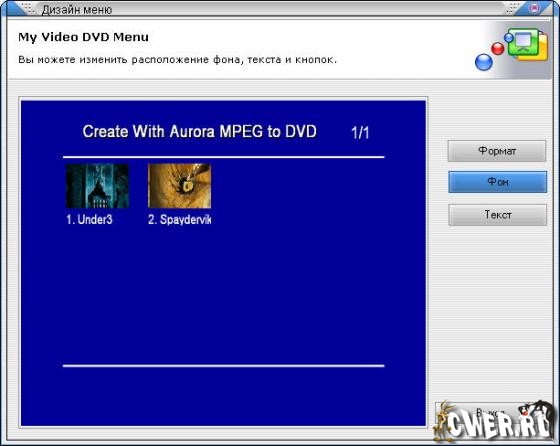 • Создание полноценного меню для DVD фильма, с возможностью выбора различных макетов, редактирования фона и текста