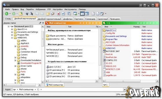 Directory Opus - мощная альтернатива Проводнику с настраиваемым интерфейсом, встроенным ftp-клиентом, внутренней поддержкой архивов, просмотром изображений, встроенным командным языком, настраиваемыми горячими клавишами для управления и очень большим числом других полезных при работе с файлами опций. Например, поиск дубликатов, безвозвратное удаление файлов, поддержка SSL и SSH/SFTP, конвертирование графики и т.д.