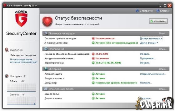 Скачать программный комплекс G Data InternetSecurity 2010 Rus (249 МБ):