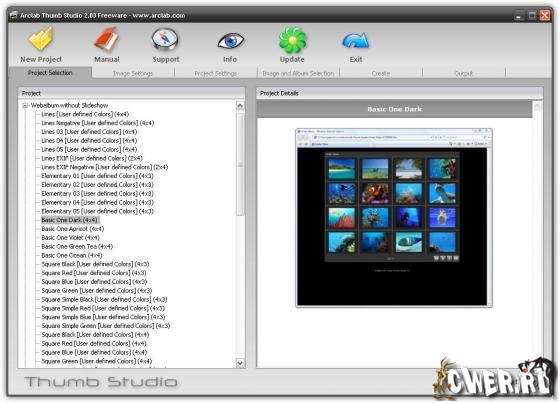 Thumb Studio - простая в использовании программа для создания галерей изображений, создания слайдшоу и наложения водяных знаков на фотографии. Кроме того, программа является конвертером между форматами изображений, который с легкостью позволяет создать три различных размера для изображения за один раз и конвертировать их в различные форматы. Программа не только содержит несколько шаблонов, которые могут быть изменены по-вашему желанию, но также и позволяет запросто интегрировать альбом или слайд-шоу прямо в вашу существующую веб-страницу. В добавок, вы сможете создавать JAVA слайдшоу.