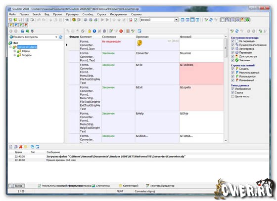 • Сохранение локализованной версии в бинарные форматы файлов: EXE, DLL, OCX