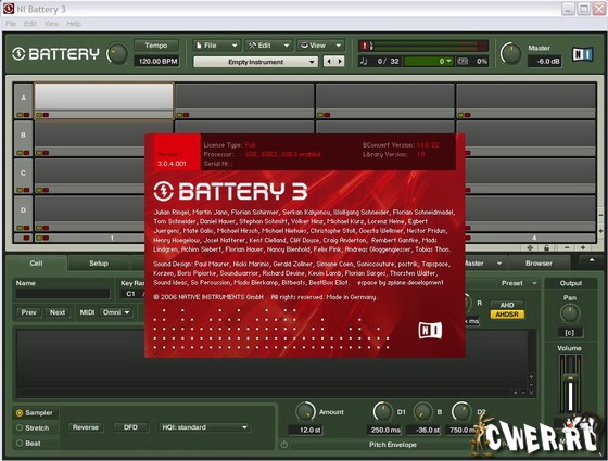 Native Instruments Battery - профессиональный сэмплер ударных. Повсеместное использование данного семплера стало возможным благодаря низким требованиям к ресурсам системы, простоте использования и совместимости с огромным числом форматов семплов.