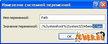 И в конце нижней строчки «Значение переменной» дописываем «;C:\arc» (без кавычек, как выделено на рисунке).