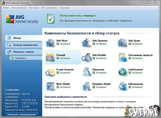 AVG Internet Security - комплекс программ для защиты ПК от опасных объектов и сетевых угроз. Программа блокирует вирусы, трояны, червей, шпионске программы, а фаервол защитит от возможных сетевых атак.