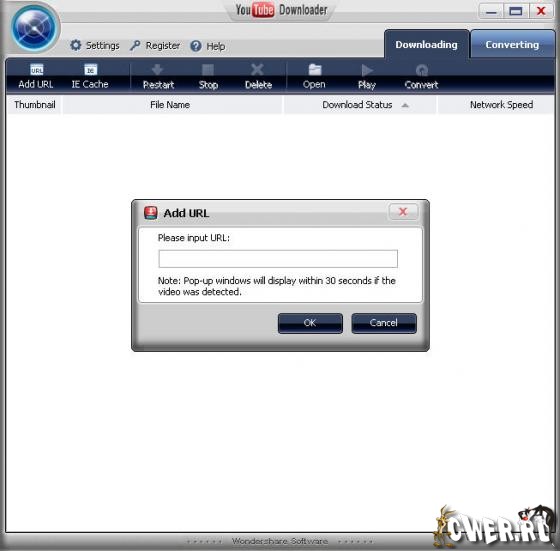 Wondershare Youtube Downloader автоматически обнаруживает и предлагает загрузить Youtube видео файлы с веб-страниц которые вы открыли и загружать несколько файлов одновременно, так же имеется возможность пакетной конвертации заранее скаченых видео файлов.