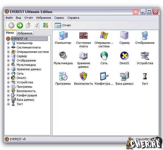 EVEREST отображает физическую информацию о вашем CPU, материнской плате, жестком диске, оптическом драйве, системной шине, температурных сенсорах, установленных программах и системных событиях. Со времени выпуска последней версии в программу добавлена поддержка более 10.000 новых аппаратных технологий, включающих последние чипсеты от Intel, поддержку новых процессоров, платформы Intel Skulltrail, поддержку PCI Express 2.0, расширенную поддержку памяти DDR3, поддержку видео от ATi и nVIDIA. Нет ничего такого, чего бы вы не смогли узнать о компьютере с помощью этой программы. Во встроенной базе данных программы имеется подробная информация о более чем 22.000 компьютерных компонентах.