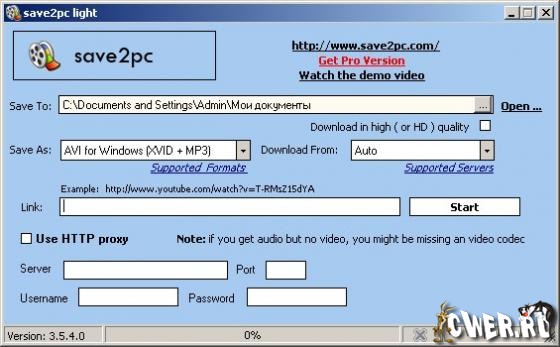 С помощью save2pc можно легко загрузить любой видео файл веб-сервиса YouTube по приведенной на его странице ссылке. Все, что требуется от пользователя - это скопировать и вставить ссылку в специальное окно программы, выбрать желаемый формат и запустить автоматическую загрузку и конвертирование видео файла.