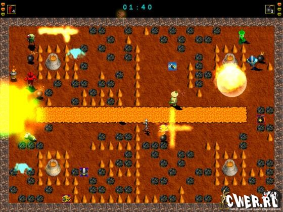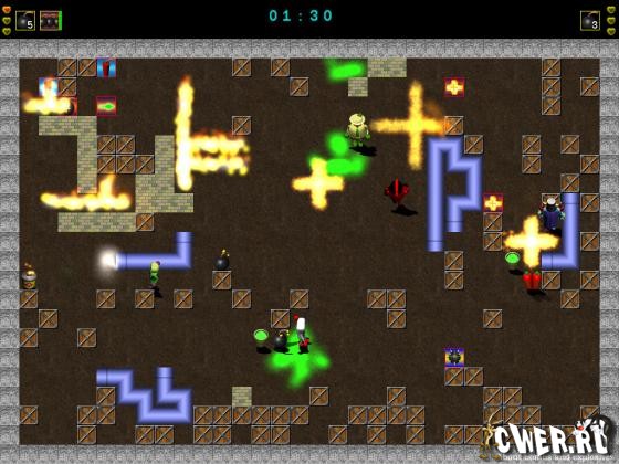 Игра является классической аркадой. Основная задача - закладывать бомбы и взрывать все на своем пути (стены, монстров, других игроков).
