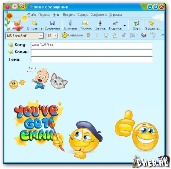 Результатом всего этого станет то, что самое обычное письмо превратится в настоящее произведение искусства с вашей личной подписью - встроенный в программу редактор позволяет вытворять и не такое.