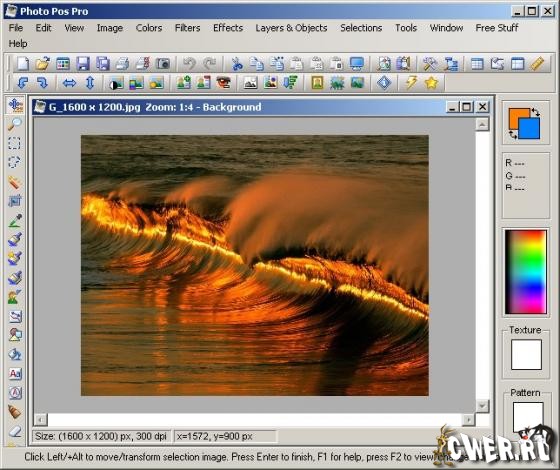 Профессиональная программа для редактирования графических изображений. Кроме стандартных средств работы с графикой, Photo Pos Pro Image Editor предлагает огромное количество различных эффектов, инструментов, образцов градиентов и текстур, которые могут быть применены к вашим изображениям. Кроме того, вы можете создавать свои графические изображения, применяя к ним доступные эффекты, создавать слои, добавлять текст и т.д. Программа поддерживает практически все известные графические файлы и поддерживает работу с большим количеством сканеров и цифровых фотоаппаратов различных производителей.
