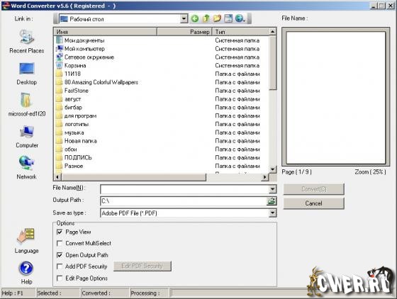 Простой и удобный конвертер офисных файлов в любом направлении между MicroSoft Word 2007 (*.DOCX), MicroSoft Word 97-2003(*.DOC), Hyper Text Markup Language (*.Htm,*.Html), Plain Text Format (*.TXT), Rich Text Format (*.RTF), Cascading Style Sheet (*.CSS), Extensible Markup Language (*.XML), BMP, JPG, JPEG, PNG, GIF, WMF and TIF to DOCX, DOC, Adobe PDF File (*.PDF), Htm, Html, TXT, RTF, CSS, XML.