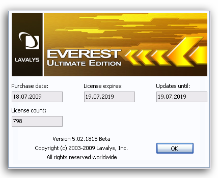 Скачать программу EVEREST Ultimate Edition 5.02.1815 Beta (9,81 МБ):