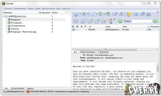 The Bat! – общепризнанная система обработки электронных сообщений, которая прекрасно совмещает в себе все качества, необходимые опытному пользователю. Интуитивный интерфейс позволяет пользователям The Bat! приступить к работе сразу после установки. Эффективный механизм фильтрации и сортировки помогает обрабатывать огромные потоки входящей почты, с которыми не справляются другие программы. Системные администраторы по достоинству оценят возможность установки в пакетном режиме, которая позволяет лично контролировать процесс инсталляции The Bat!. Все эти функции, наряду с полностью настраиваемыми инструментами автоматической обработки, избавляют пользователей от рутинной работы. Кроме того, The Bat! полностью совместим с Windows Vista и идеально взаимодействует с различными механизмами этой операционной системы.