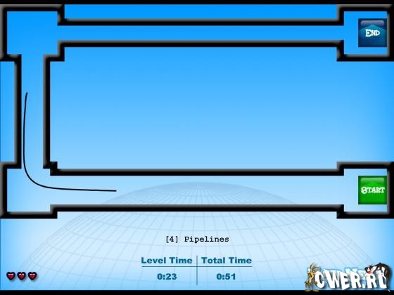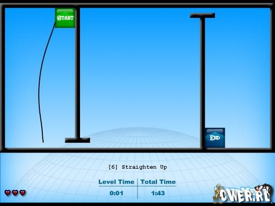 Интересная игра, главная цель которой - протянуть нитку от старта до финиша, не касаясь стенок и препятствий. В игре 30 уровней. Каждый уровень сложнее предыдущего.