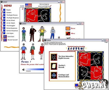 Серия "Listen!" рассчитана на тех, кто уже начал изучать язык. Лексика охватывает бытовую тематику и содержит наиболее часто употребляемые слова и выражения. Каждый урок содержит иллюстрации и дикторский текст к ней. Можно прослушать текст и ответить на ряд вопросов. За каждый верный ответ получаете определенное количество очков. После выполнения задания программа покажет результат в процентах.