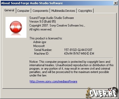 Скачать программу Sound Forge Audio Studio 9.0.85 (38,62 МБ):