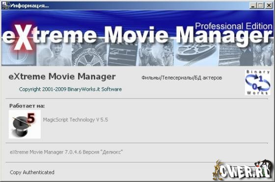 Скачать программу eXtreme Movie Manager 7.0.4.6 Deluxe Edition (25,78 МБ):