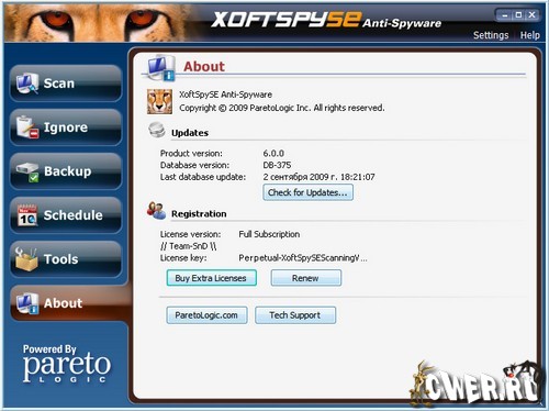 XoftSpySE Anti-Spyware не только находит разнообразные вредоносные модули, но и предоставляет исчерпывающую информацию о каждом из них. Присутствует возможность работы по расписанию. В XoftSpySE одна из самых больших баз данных: около 300000 определений.