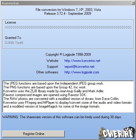 Konvertor - утилита для просмотра (проигрывания) и преобразования графических, текстовых, аудио и видеофайлов. Перечислить все форматы, с которыми может работать Konvertor, весьма затруднительно - их более семисот, включая около пяти десятков фильтров для обработки изображений (перечень всех поддерживаемых форматов занимает четыре веб-страницы сайта разработчика). Не менее долго придется перечислять и все возможности этой программы, поэтому отмечу лишь две из них: умение работать в пакетном режиме (без оплаты позволяет конвертировать только пять файлов одновременно) и из командной строки. Кстати, возможности по конвертированию можно расширить плагинами.