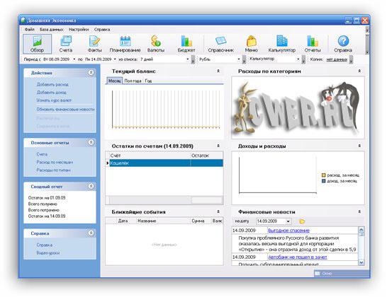 «Домашняя экономика» — это новая программа для управления личными финансами и планирования семейного бюджета. Теперь вы сможете точно знать, на что уходят ваши деньги и быстрее достигать значимых финансовых целей. Встроенный органайзер позволит планировать расходы и доходы, а система отчётов даст наглядное представление о движении денег. Программа включает уникальную функцию прогнозирования инфляции, благодаря которой становится возможным расчёт реальной доходности банковских вкладов и оценка эффективности кредитов. Вы сможете сравнивать различные виды вкладов или кредитов и выбирать наиболее выгодные. Программа позволяет также загружать курсы валют и просматривать доходы и расходы в любой выбранной валюте. Ориентироваться в экономической ситуации вам поможет ежедневная сводка самых важных финансовых новостей, а также большое количество практических рекомендаций от экспертов по управлению личными финансами. Интерфейс программы только на русском языке.