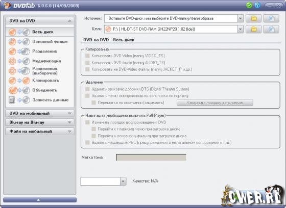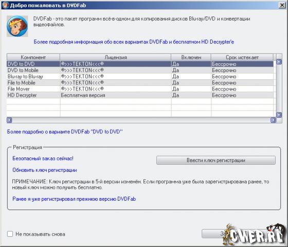 DVDFab – мощный, многофункциональный программный продукт для копирования DVD дисков с возможностями гибкой обработки видеопотока. Программа является одной из лучших на сегодняшний день, из инструментов для копирования, разбиения, пережатия и конвертирования DVD дисков с фильмами. Снимает все защиты и ограничения с диска и при желании пережмет диск большой емкости и вместит его в обыкновенную пустую DVD болванку с минимальными потерями качества (DVD9->DVD5) или разобъет фильм на два диска с полным переносом его меню, удалит всю рекламу, запишет только фильм и многое другое. Программа имеет интуитивно понятный, мультиязычный интерфейс включая русский.