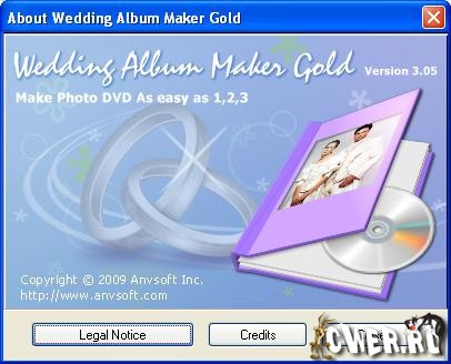 Wedding Album Maker Gold – это профессиональная программа фотоальбома, которая создает впечатляющее слайд шоу из свадебных фотографий с музыкой, переходами и DVD меню. Данная программа позволяет быстро и легко создать впечатляющие свадебные альбомы на DVD видео диски, чтобы поделиться своей историей любви по свадьбе с другими людьми. Новая версия поддерживает больше выводных форматов, такие как: MPEGI, MPEGII, MPEG-4, MP4 for iPod, PSP, 3GP сотовые телефоны, FLV , XVid AVI, AVI, видео форматы для Anrchos, Creative Zen Vision, iRiver PMP 100, YouTube, MySpace.