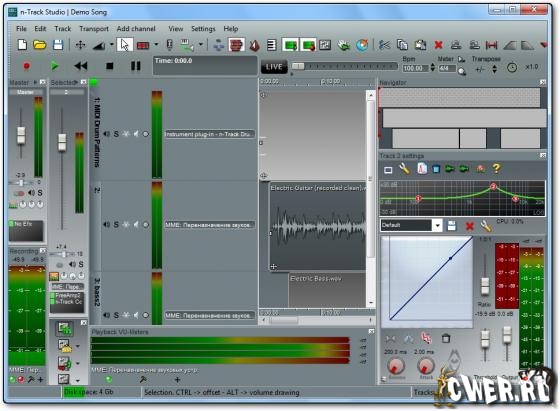 n-Track Studio поможет вам превратить ваш компьютер в домашнюю звукозаписывающую студию. Программа представляет полнофункциональную многотрековую аудиостудию, позволяющую в домашних условиях создавать свои собственные профессиональные музыкальные композиции. Вы сможете записывать и воспроизводить огромное число аудио и MIDI треков одновременно, накладывать всевозможные эффекты на каждый трек, работать с каналами и т.д. Кроме стандартных эффектов (Reverb, Compression, EQ, Echo, Auto volume, Pitch Shift и Chorus), программа позволяет подключать DirectX и VST 2.0 плагины от сторонних разработчиков. N-Track Studios может работать с любыми стандартными или многоканальными 16 и 24-битными звуковыми картами.
