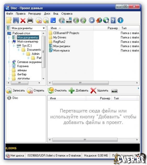 CDBurnerXP - программа для записи CD и DVD, включая Blu-Ray и HD-DVD. Пишет данные с жесткого диска и из ISO имиджей, записывает CD с данными и аудио-CD. Кроме этого, позволяет создавать загрузочные диски, переписывать аудиоCD на жесткий диск "на лету" в файлы MP3, OGG, WMA, WAV, а также сохранять образы CD в виде ISO-файлов. CDBurnerXP может работать как с обычными, так и с перезаписываемыми дисками и понимает "мультисессии".