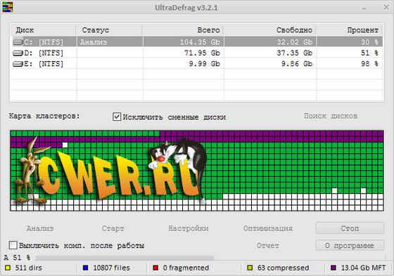 Скачать программу UltraDefrag 3.2.1 x32 (0,5 МБ):