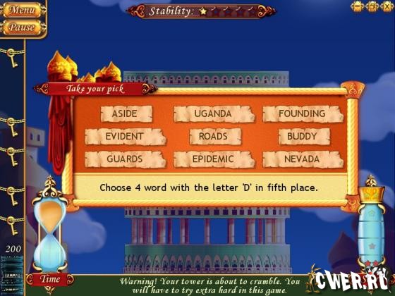 Совершите путешествие во времени и придумайте новые слова! Бросьте лексический вызов 25 уникальным словесным играм из 5 различных областей и наблюдайте за тем, как Ваша башня становится все выше и выше. Добьетесь успеха - и она достигнет невиданных высот; ошибетесь – и она рухнет! Пройдя это невероятное испытание для умственных способностей с великолепной графикой и увлекательным процессом игры, Вы насладитесь часами словесного веселья!
