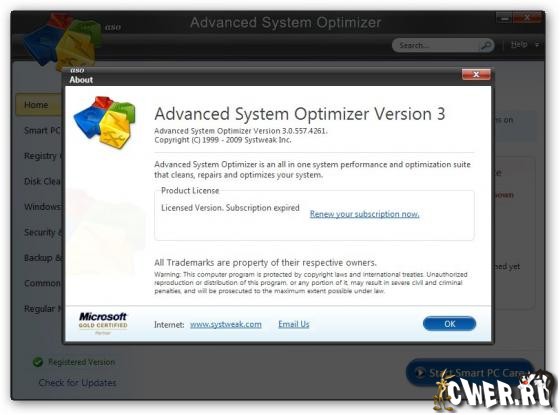 Advanced System Optimizer - программное решение для настройки и оптимизации работы вашей системы. Это легкий и самый лучший способ для сохранения производительности и безошибочной работы вашей системы. Программа содержит в себе более 30 различных инструментов для улучшения производительности и скорости работы вашей операционной системы. С помощью этой программы вы сможете чистить жесткий диск от ненужных файлов и различного мусора, проделывать чистку и дефрагментацию системного реестра, удалять конфиденциальные данные (кукисы, история сайтов, кеш и любые другие следы вашей активности), а также создавать резервную копию системных файлов и, при надобности, восстанавливать их.