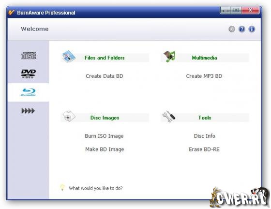 - Запись с любых типов носителей CD/DVD, а также Blu-Ray (BD-R/BD-RE)
