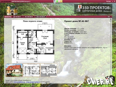 Кирпичный дом - это не только прочно и долговечно, но и престижно! Основные достоинства кирпичных домов: долговечность, высокая защищенность от возгорания, устойчивость к биологическим факторам и, конечно, внешний вид. С помощью этой программы вы сможете выбрать наиболее подходящий для вас проект и построить или заказать добротный и солидный дом. На диске представлены готовые проекты домов разной площади и планировки, решенные в традиционных и необычных стилях: кантри, конструктивизм, модерн, - удобные для семей различного размера и достатка. Конструктивные схемы домов позволят в процессе строительства вносить изменения в принятое планировочное решение.