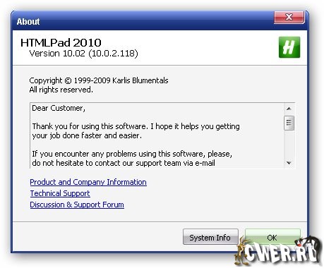Скачать программу Blumentals HTMLPad 2010 Pro v10.0.2.118 (8,49 МБ):