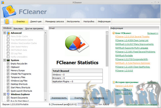 Скачать программу FCleaner 1.2.5.1016 (1,15 МБ):
