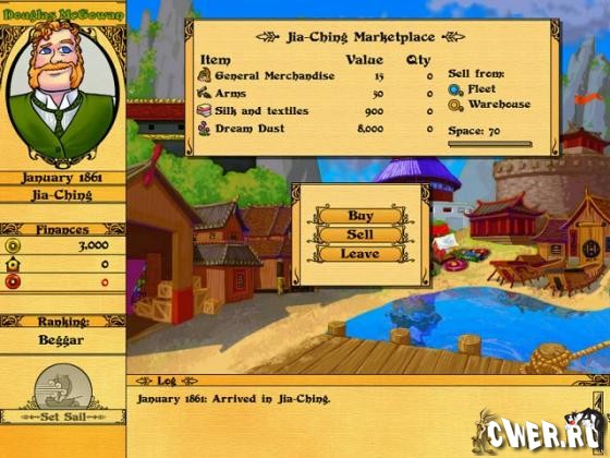 Самая первая часть популярной серии стратегий Tradewinds в новом издании. Приключенческая стратегия - торговое мореходство по пиратским морям. Задача - скопить капитал в миллиард долларов. Начинается игра с портовой сутолки - рынки, быстро меняющиеся цены и т.п. Купля-продажа - основной способ заработка.