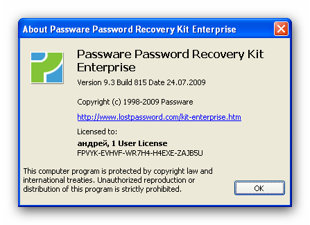 Passware PasPassware Password Recovery Kit Enterprise - набор инструментов для подбора или определения паролей к файлам (более 100 видов), созданными самыми известными в мире программами: Office, Excel, Word, Windows XP/2000/NT ,Access, Outlook, Outlook Express, Exchange, WinZip PKZip ZIP, WinRAR RAR, VBA Visual Basic modules, Internet Explorer/ EFS - Encrypted File System, FileMaker/ Acrobat, Quicken, QuickBooks, Lotus 1-2-3, Lotus Notes, Lotus, Organizer, Lotus WordPro, Quattro Pro, Backup, Project, MYOB, Peachtree, Paradox, ACT!, Mail, Schedule , Money, WordPerfect и MS Office 2007, а также определения ключа Windows XP/2000/NT.
