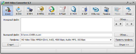 AVS Video Converter - программа с расширенными возможностями, всё в одном, конвертер, прожиг VCD, SVCD, DVD, продвинутый видеоредактор. Ключевой особенностью его является: конвертер AVI, MPEG, WMV, DVD видео в AVI, MPEG, WMV, RM форматы, прожиг DVD, SVCD или VCD, пакетное конвертирование, редактирование видео с наложением эффектов и фильтров, извлечение аудио из видео и сохранение в отдельный аудиофайл, извлечение фрейма (кадра) и сохранение как картинки, разбиение на отрезки и соединение видеофайлов, ротация видео, добавление к видео текстов, баннеров, логотипов, выбор и настройка кодека для конвертирования, имеет русский интерфейс.