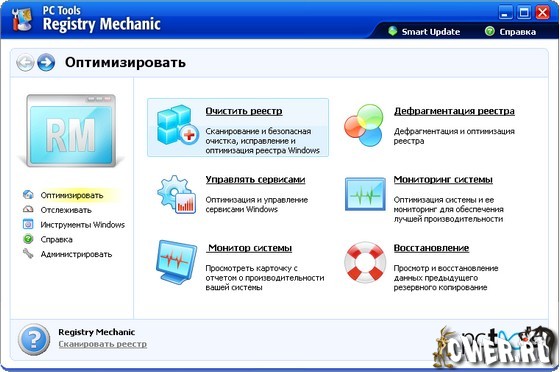 Registry Mechanic - программа предназначена для очистки, исправления ошибок, проверки целостности и восстановления реестра. Программа удаляет неправильные записи в реестре, что позволяет увеличить быстродействие операционной системы. Кроме этого, данная программа позволяет создавать резервные копии системного реестра.